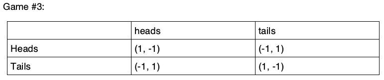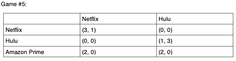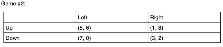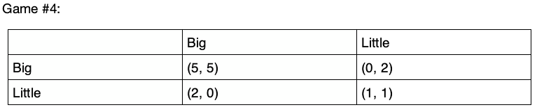 Chapter 15.1.1 ExercisesPractice solving matrix gamesBen ZamzowNov 27, 2024ShareFor each of the following games please identify the following:a) Each players’ best responsesThanks for reading Microeconomic Principles! Subscribe for free to receive new posts and support my work.Subscribeb) Any dominant strategiesc) All Nash equilibriad) Is the game a Prisoner’s dilemma?See the solution walk-through right here: Thanks for reading Microeconomic Principles! Subscribe for free to receive new posts and support my work.Subscribe